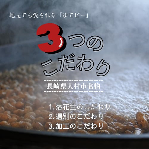 塩ゆで落花生発祥店の味。程よい歯ごたえとその後に続くほのかな甘み。「ゆでピー」の愛称で親しまれ、おやつやお酒のおつまみに最適で大人から子どもまで食べ出したら止まらない大村市のソウルフードです。